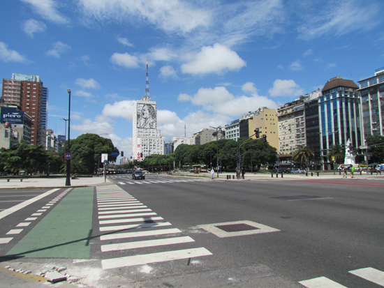 Depois disso, caminhamos em direção à Avenida 9 de Julio (é muito fácil, fique de costas para o Café Tortoni, vire a direita e siga), para encontrar o monumento que eu apontava sempre que via ao longe: o Obelisco!