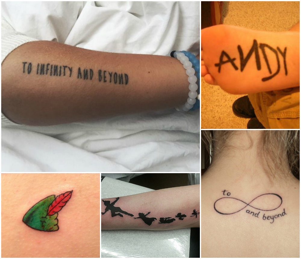 Ao infinito… E além! Uma das melhores frases dos desenhos! Para acompanhar, que tal tatuar o nome de Andy no seu pé? Ou o chapéu do Peter Pan ou suas sombras?